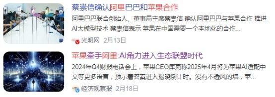 再往前的,2月13日,阿里巴巴董事局主席蔡崇信确认了阿里与苹果合作,苹果新机将将接入阿里大模型推出适配中国用户的大模型。