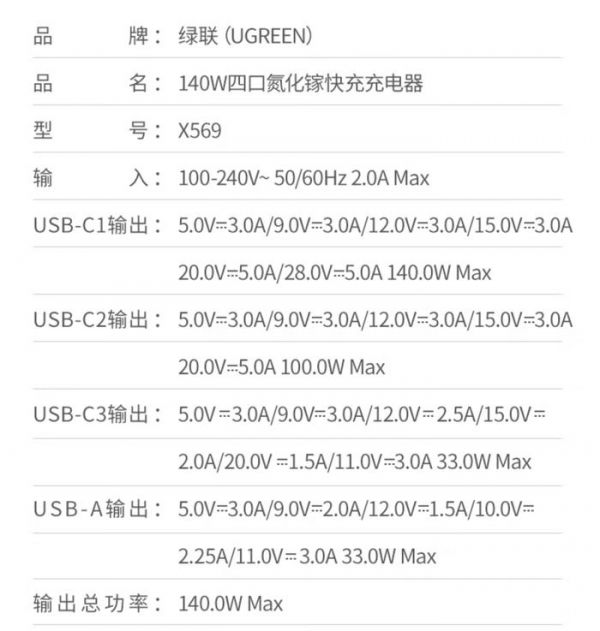 (图片来源:绿联官方)一问客服才知道,这款充电头所标注的140W是指140W PD充电而并非华为自家的140W,而根据雷科技之前的测试,华为这款机型使用第三方充电头的充电功率只能达到20W上下。