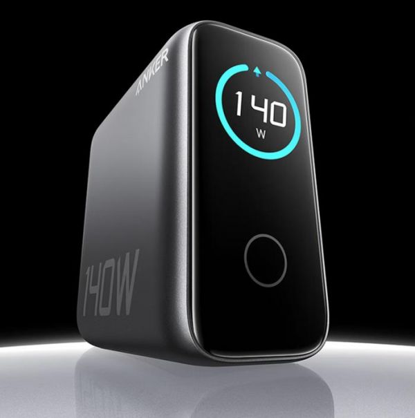 第一款是来自ANKER的最新产品——ANKER140W屏显充电器。其首先改进了接口设计,将USB口放置在底部避免插墙时的掉落,同时两个USB-C口可提供高达140W的功率,还有一个USB-C口大功率为40W,剩下还有支持33W的USB-A口。