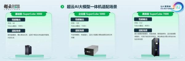 这正是超云推出SuperCube系列大模型一体机的核心动因——将算力集群、存储系统、网络架构、安全模块与预训练模型深度集成,实现开箱即用的"AI即服务"。
