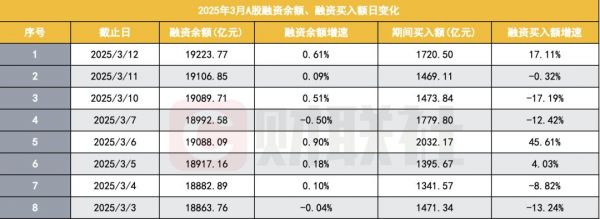 截至2025年3月12日,A股融资余额攀升至19223.77亿元,刷新2015年8月以来的历史峰值,并在3月10日至12日连续三个交易日站稳1.9万亿关口。这一数据不仅反映了市场杠杆资金的活跃度显著提升,更凸显出投资者对结构性行情的强烈信心。