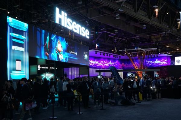 1月8日,在美国拉斯维加斯,人们参观海信展区。(新华社)