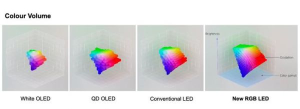 换句话说,RGB-Mini LED 电视在色域和色彩纯度上碾压 QD-Mini LED,甚至在控色净度等方面有着超越 QD-OLED 的实力,是目前唯一能够挑战 OLED 色彩还原能力的 LCD 技术。