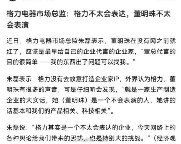 格力电器市场总监:格力不太会表达,董明珠不太会表演! [笑cry]