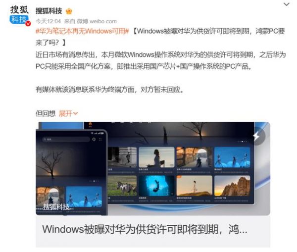 所以本月之后,华为笔记本可能无法再使用微软Windows系统。