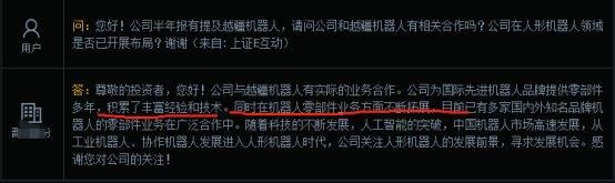 第三点,公司是越疆人形机器人的核心供应商,为越疆供应铝合金结构件,已进入批量合作阶段,在投资者互动平台表示与越疆机器人有实际业务合作,且为国际先进机器人品牌提供零部件多年,积累了丰富经验和技术。