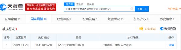 网易科技讯11月22日消息,天眼查数据显示,11月20日,沪江网的股东之一——上海互捷企业管理咨询合伙企业(有限合伙)被上海市第一中级人民法院列为被执行人,执行标的约1.44亿。