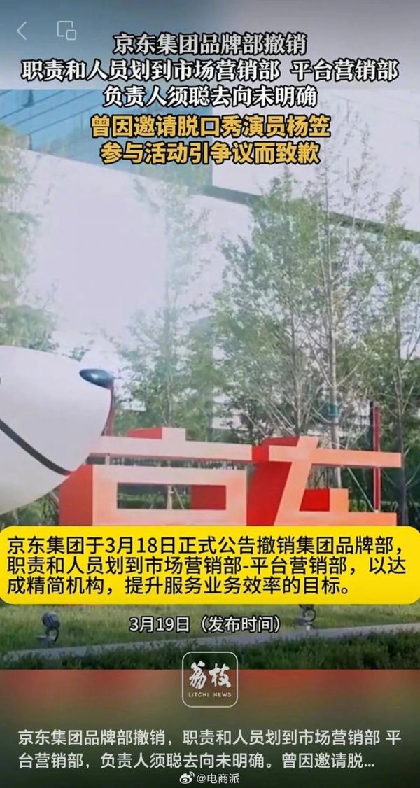 京东集团品牌部撤销了?京东辟谣:外界存在误解,是划归到零售业务下