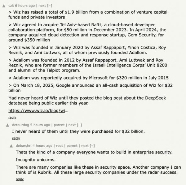 也有 HN 网友表示,他们之所以知道 Wiz,是因为今年早些时候该公司发布的一篇关于 DeepSeek 数据库公开问题的博客文章。