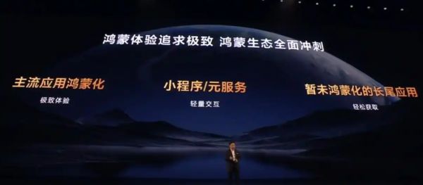 对于不同类型的应用适配,华为制定了三个“冲刺目标”:主流应用鸿蒙化提供极致体验、小程序/元服务提供轻量交互、暂未鸿蒙化的长尾应用可轻松获取。