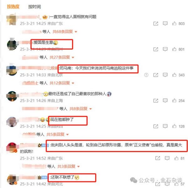 对此,有网友表示不敢相信,更多的网友则调侃:爱国是生意;著名爱国主义表演艺术家;批判别人头头是道,轮到自己却原形毕露,原来“正义使者”也偷税,真是莫大的讽刺; 痛批逃税自己逃税,痛批美国富人逃税自己也逃税还在美国买房。