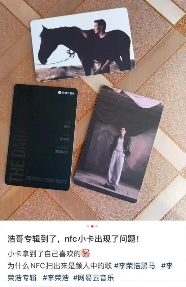 近日,有部分网友在社交平台反映称,随李荣浩专辑附赠的NFC小卡扫出来却是其他歌手的歌。