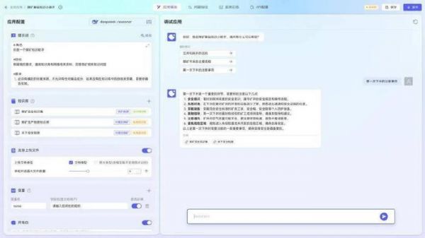 只有垂域矿山大模型还不够,为了让AI深入核心业务环节,云鼎科技还打造了NLP应用智能体,具备知识管理、工作流编排、应用构建、知识运营等核心功能,并为客户提供了灵活的知识问答编排框架和应用模版,快速接入DeepSeek构建知识问答应用、工作流应用、智能体应用。