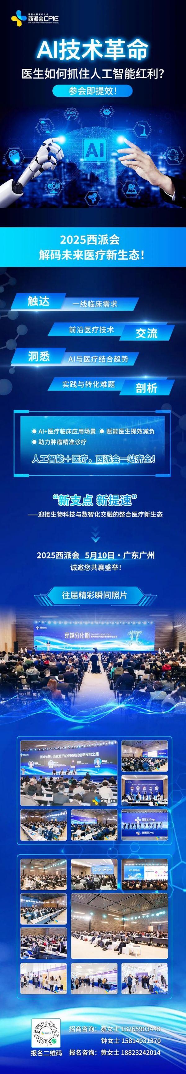 西派会将于5月10日在广州举办,打造肿瘤与人工智能论坛,为医生全方位展示AI领航的疾病防诊治全流程关键环节及医疗应用场景,同期举办AI for Health峰会,助力医生提升工作效率,推动医疗行业智能化转型。