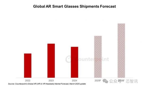 与此同时,2024 年全球 AR 眼镜出货量同比下降 8%,但“观影型”AR 眼镜(birdbath 技术)同比增长了 27%,而“信息显示型”眼镜(waveguide 技术)因 INMO 销量低迷暴跌 67%。