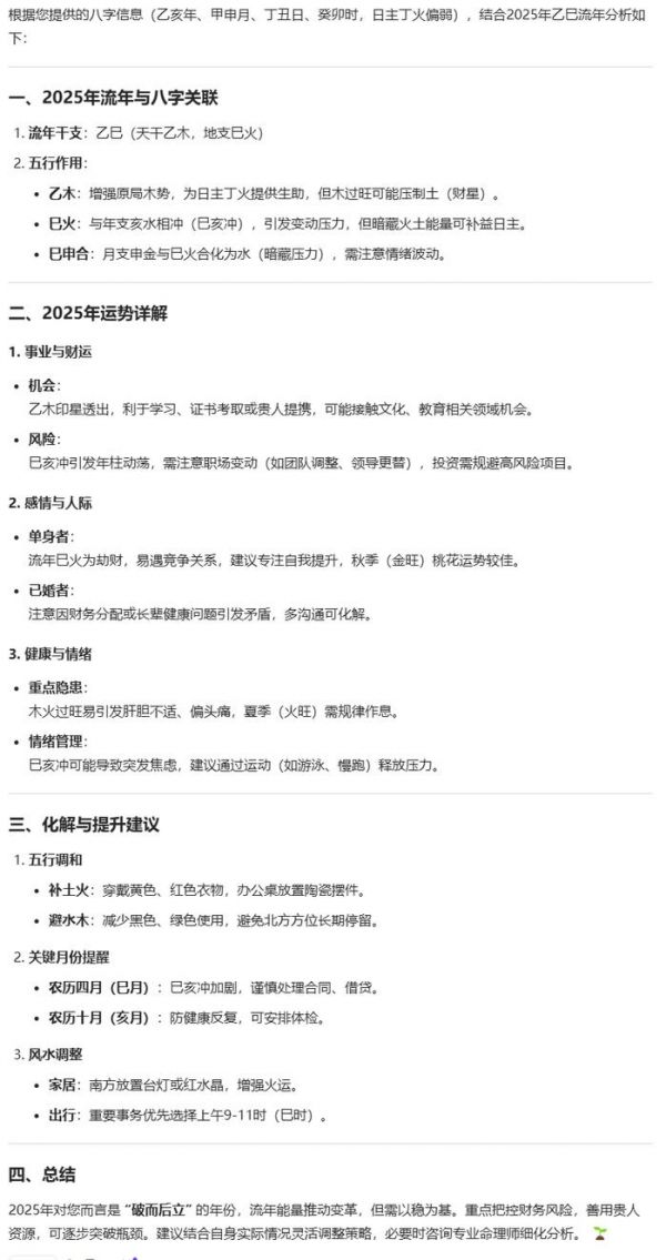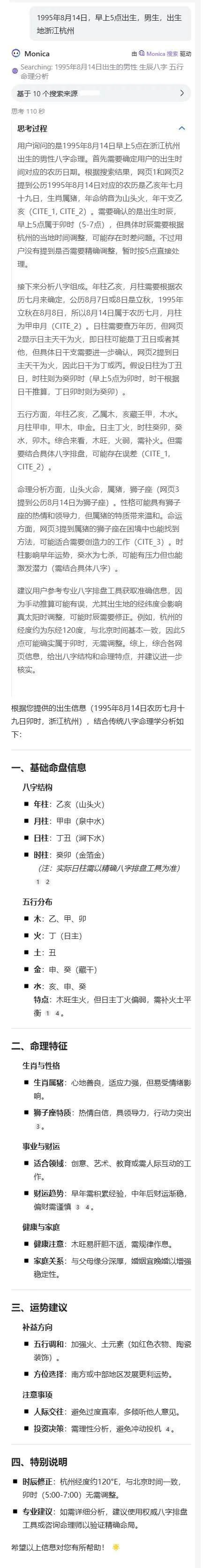 DeepSeek 根据明确的出生时间信息,确实可以计算出所谓的“八字”,乍一看有模有样的。