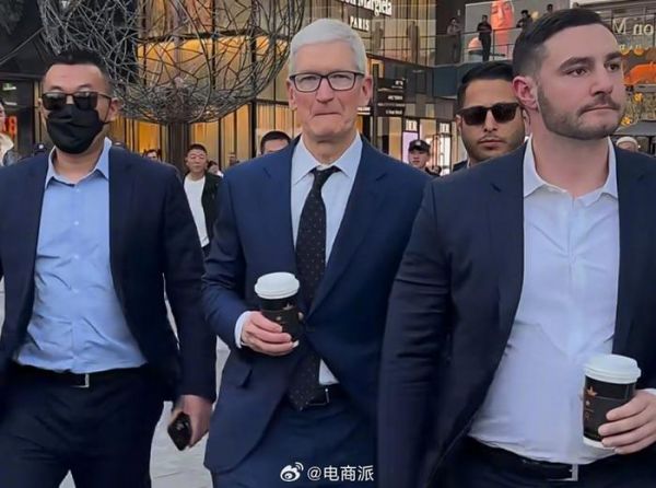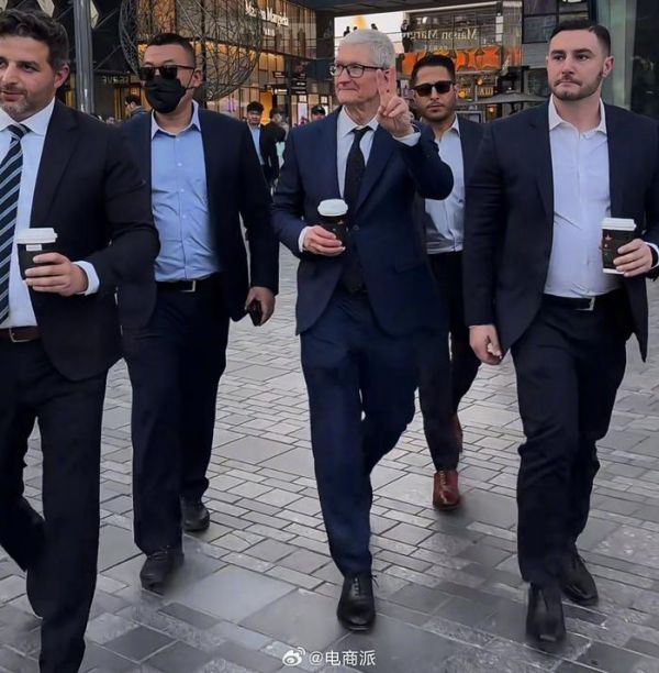 苹果CEO库克又去三里屯,4个保镖跟着出街,等红绿灯时被围着合影