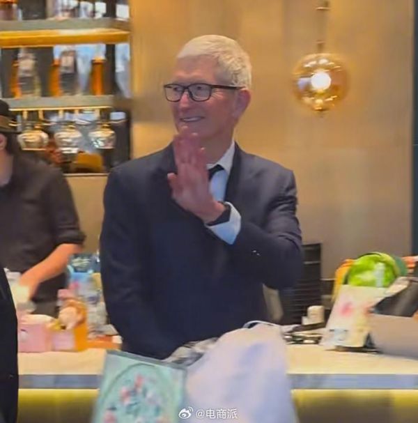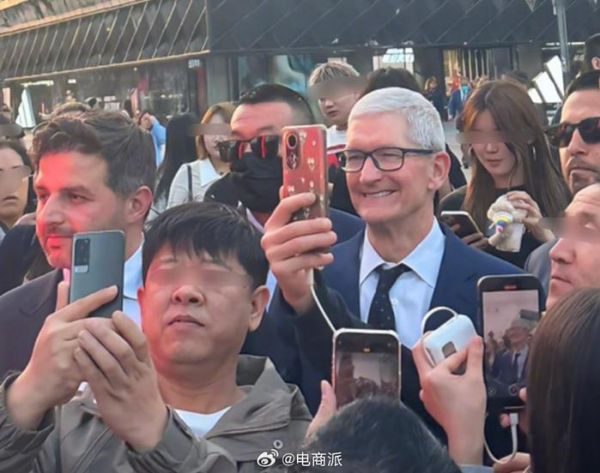 苹果CEO库克又去三里屯,4个保镖跟着出街,等红绿灯时被围着合影。