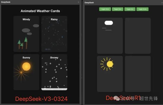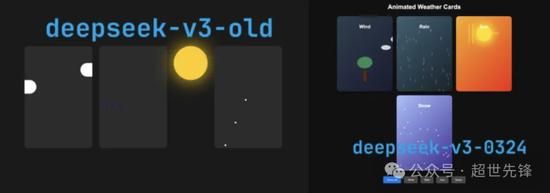 对标Claude 3.7的编程表现根据开发者实测反馈,新版V3在前端代码生成(如JavaScript、CSS与HTML整合)能力上已接近Claude 3.7水平。例如,生成动态天气卡片动画的代码时,其逻辑完整性和实现效果与Claude 3.7生成的版本几乎无异。用户评价其提升幅度“相当于Sonnet 3.5到Sonnet 3.6的跨越”,甚至更显著。
