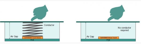 全新的Multi-Sense融合了英飞凌的多项创新。在电容触摸方面,集成了第五代CAPSENSETM IP,相比上代产品提供了10倍信噪比提升。更高信噪比意味着产品的鲁棒性,也使得其支持悬浮触控技术,该技术无需传统按键设计中的弹簧,可简化结构设计,提升良率并减少加工复杂度。
