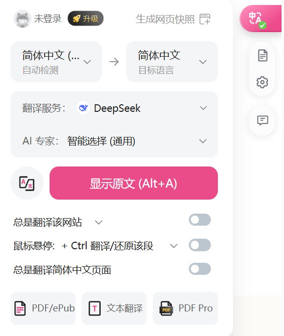 另外,如果是阅读网页文章的话,还可以使用"沉浸式翻译"这个插件,下图是我用它翻译的Github页面DeepSeek内容的概述,逐段翻译的阅读体验也很不错。