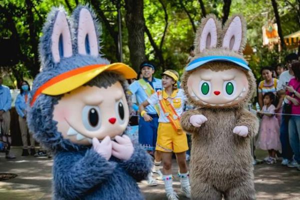 泡泡玛特城市乐园,LABUBU 偶装表演。