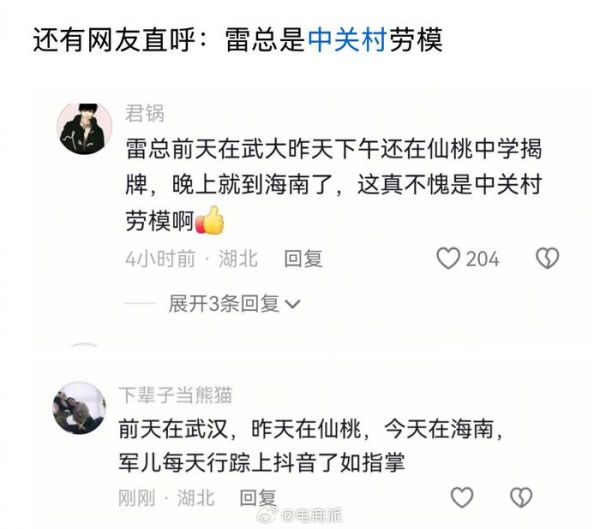 雷军又现身博鳌亚洲论坛,一天一个城市,网友直呼中关村劳模。[笑cry]