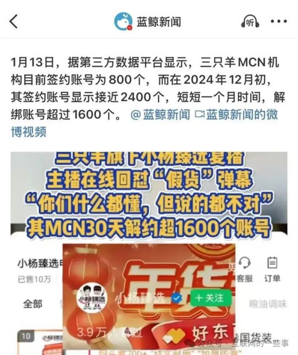 此事一出,震惊整个直播带货行业,亿万粉丝眼睁睁看着“小杨哥”跌落神坛,三只羊直播间全面停播,旗下签约达人大量流失,品牌商纷纷解约,整个电商帝国岌岌可危。