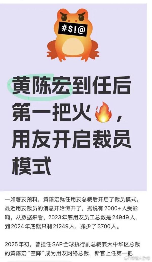 用友改革全靠“砍”?被传大规模裁员,80%项目转外包,黄陈宏上任后