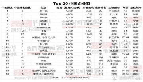 近日,胡润研究院今日发布《2025胡润全球富豪榜》,这个财富的数据,是截止至2025年1月15日的,并不截止至目前。