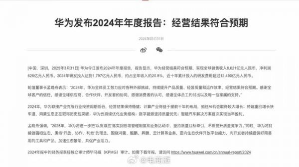 #华为发布2024年年报# 华为2024年研发投入1797亿,营收8621亿,孟晚舟致辞:华为要坚持长期主义,与潮流同向发展。