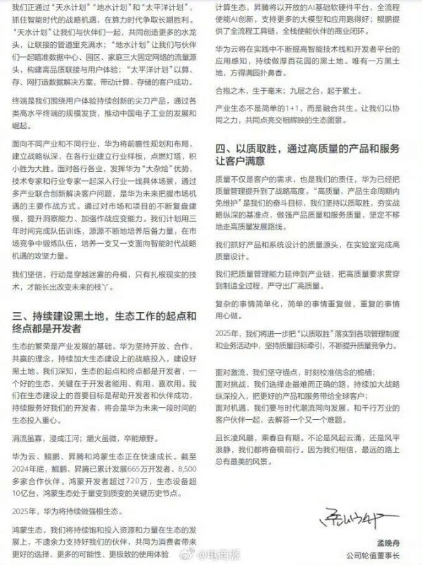 华为轮值董事长孟晚舟新年致辞:鸿蒙一年跨越十年发展