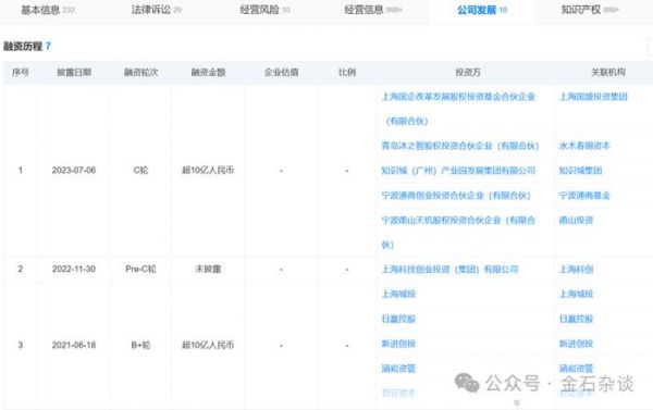 B+轮则引入了多名上海本地资本,上海城投、日赢集团、国泰君安旗下的君证资本、上海国盛等均进行了投资,本轮融资超10亿,2023年7月公司进行了C轮融资,再度融资超10亿,上海国资平台上海国盛集团领投, 宁波国资宁波通商基金等跟投。