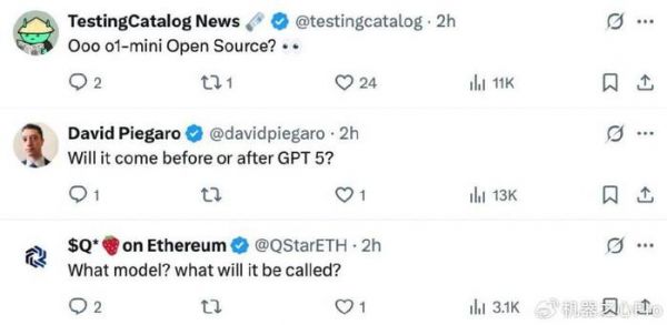 在奥特曼公布开源模型的消息后,评论区一片沸腾。有人猜测是不是 o1-mini 要开源,有人好奇这个模型是在 GPT-5 之前还是之后发布,有人开始猜测这个模型的名称。