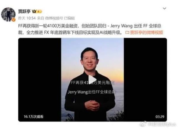 贾跃亭微博宣布,法拉第未来(FF)再获4100万美元(约合3亿人民币)融资,一时之间,让网友们都是震惊了,称他是最会融资的“车企老板”。