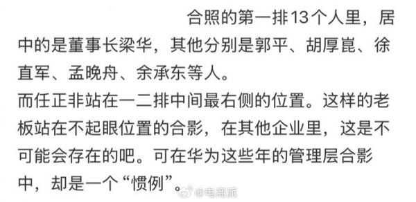 华为最新大合照,任正非站在右侧,依旧低调。