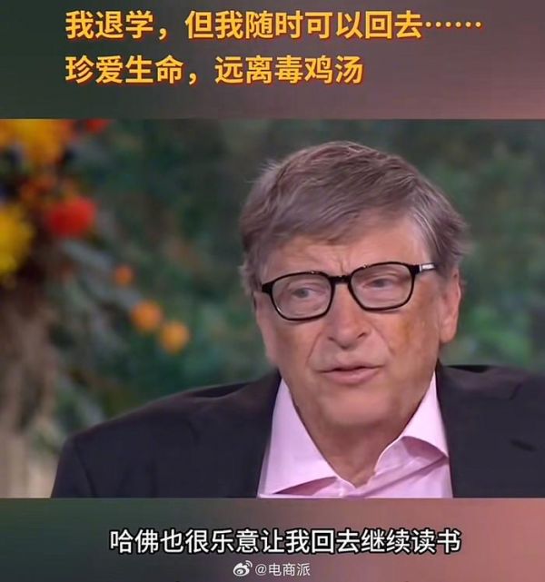 比尔盖茨:别信我辍学办微软那种毒鸡汤,当时我随时能回哈佛念书。