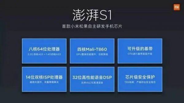 图源:网络当年的澎湃 S1 采用 4+4 架构,由 8 颗 A53 内核组成(频率不同),GPU 核心为 Mali-T860,采用 28nm 工艺,但因为该芯片表现不佳,小米并没有在后期推出迭代型号并应用于新手机。