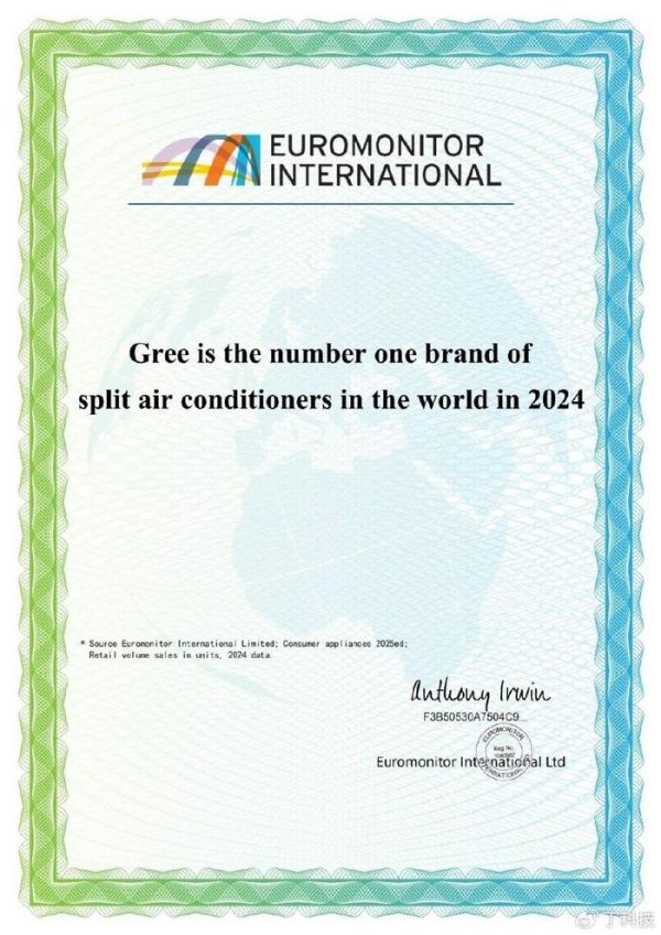 在全球家电产业的竞技场上,美的、格力、海尔三家中国企业毫无疑问是明星企业。丁科技网注意到,2025年以来,这三个家电巨头分别被市场调查机构欧睿国际授予了“全球第一”的认证: