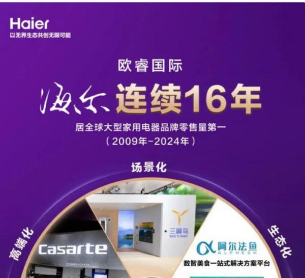 欧睿国际:海尔连续16年居全球大型家用电器品牌零售量第一