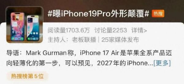 就在今早,词条#曝iPhone 19 Pro外形颠覆#突然登上微博热搜榜,并一度冲进前五,引发网友的关注和热议。