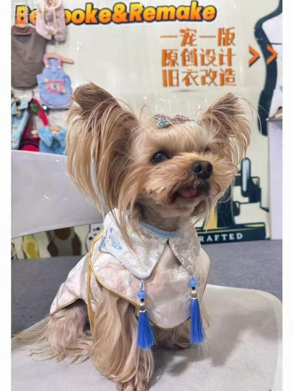 私人定制则有一些成本支出,价格也相对贵一些,臧硕尝试用旗袍面料给狗做新中式礼服,在社交网络和线下展会上都收到了不少好评。