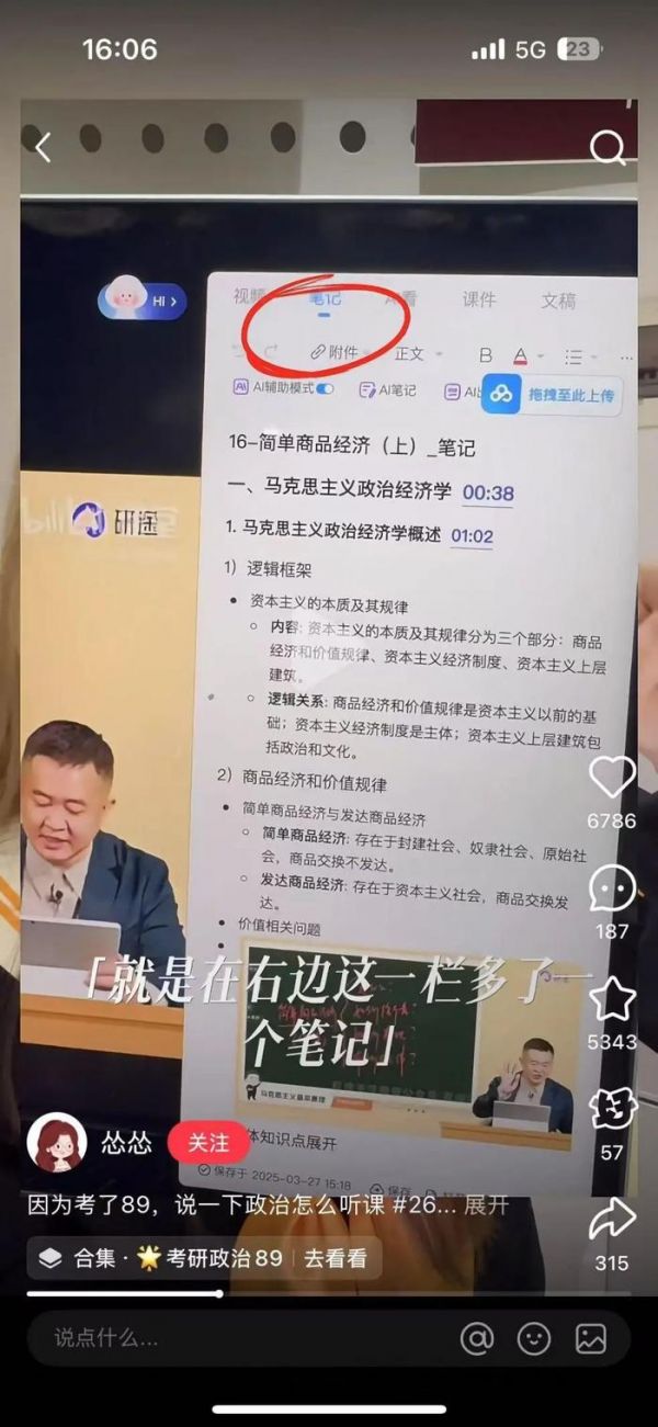 最近,在观看某机构的考研政治课程攻略时时,她意外的发现了被称为“最强考试搭子”AI视频笔记功能,把4⼩时⽹课浓缩成4分钟就能看完的笔记,包括知识点,易错点梳理,还贴心地用红色标注了高频考点。