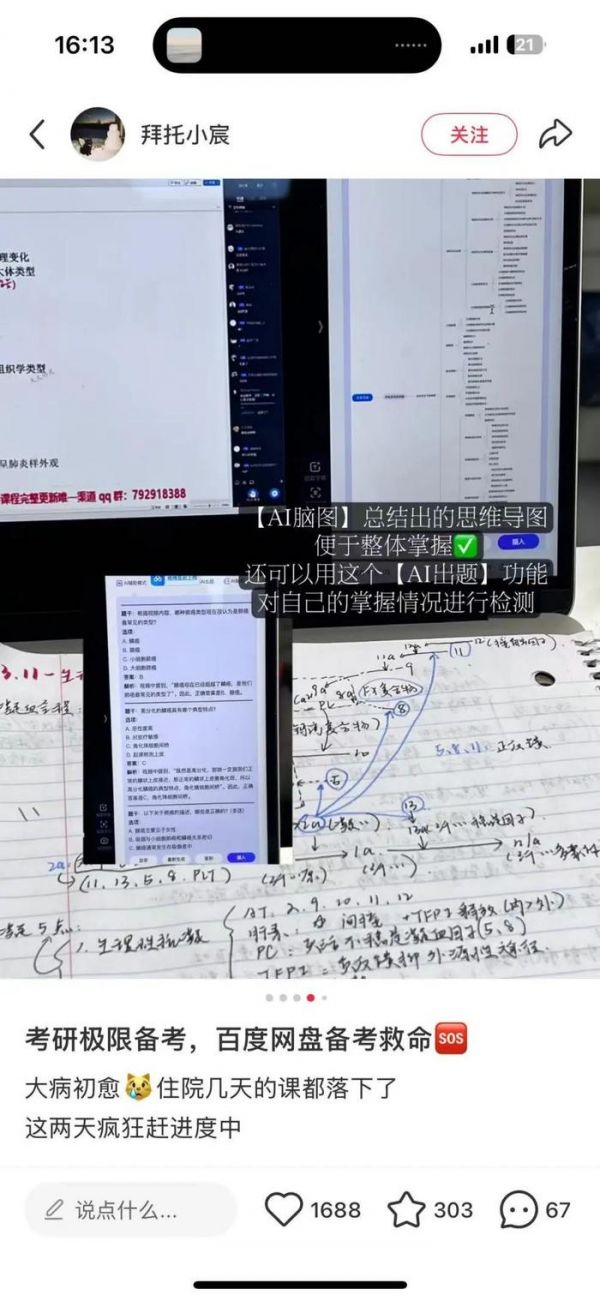 作为医学生的小宸,因为生病考研进度落下了不少,为了赶进度,小宸经常听完一位考研老师之后,又入另一个网课。而笔记的部分就交给了网盘AI笔记功能“后来我就用百度网盘听网课,用AI笔记把网课的内容都整理了出来,3个小时的网课3分钟笔记就出来了,比我自己梳理更快更完整,而且知识点自带定位戳,便于定位和提纯重要的内容,看不懂的地方定位回去听一遍就OK了,很贴心!”