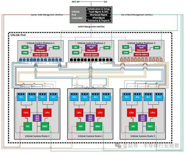 由于它面向现代数据中心,UALink协议支持集成的安全和管理功能。例如,UALinkSec为所有流量提供硬件级加密和身份验证,防止物理篡改,并通过租户控制的可信执行环境(如AMD SEV、Arm CCA和Intel TDX)支持机密计算。该规范允许虚拟Pod分区,其中加速器组通过交换机级配置在单个Pod内隔离,以在共享基础架构上实现并发多租户工作负载。而UALink Pod将通过专用控制软件和固件代理使用PCIe和以太网等标准接口进行管理。通过REST API、遥测、工作负载控制和故障隔离支持完全可管理性。