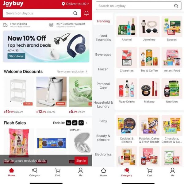 据一位英国用户实测,joybuy的商品目前覆盖家电家具、零食百货、宠物用品、美妆护肤等品类,国内品牌与海外品牌均有,平台为新用户提供专属优惠券,前期各方面优惠力度较大,用户可享受满10镑减5镑、包邮、当日达与次日达等权益。