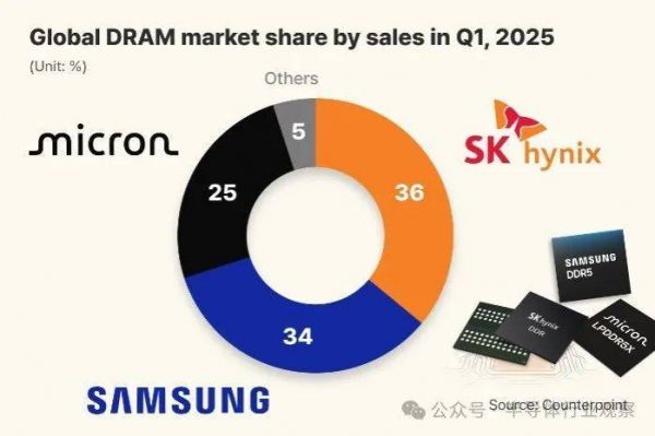 报告指出,今年第一季度,SK海力士占据了全球DRAM市场36%的份额,略高于三星电子的34%和美光的25%。该公司强劲增长的关键驱动力在于其在高带宽内存(HBM)领域的主导地位,据报道,该公司在该领域占据了70%的市场份额。