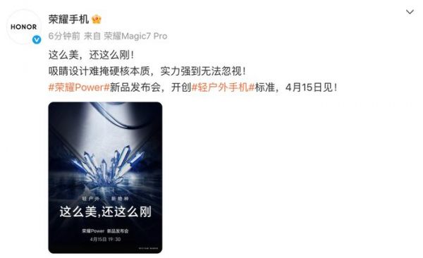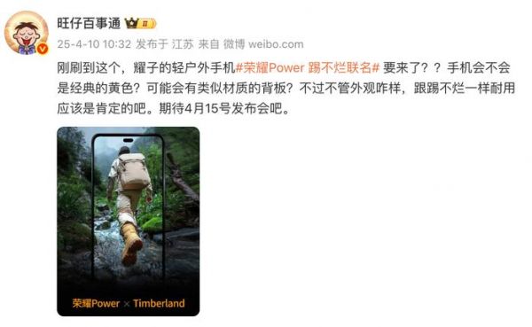 自荣耀Power新品发布会官宣定档4月15日以来,荣耀Power预热悬念海报陆续释出,这款轻户外手机配置全貌也逐渐清晰了起来,持续引发网友的关注和讨论。