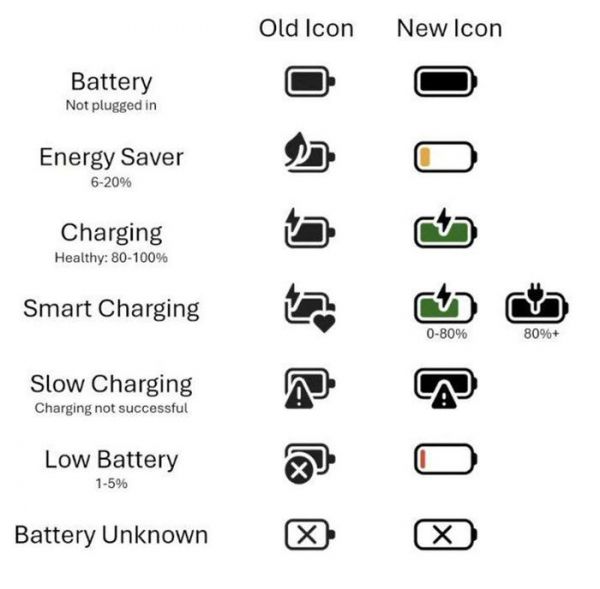 除了Office套件以外,Win11的其他图标也准备更新,就比如电池图标的各种状态就有了新样式,最大的改变就是电池变长了(视觉上),可能微软觉得这样会给人续航更久的感觉?