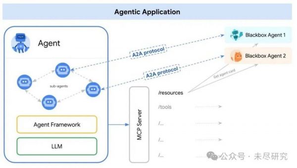 在谷歌的表述中,MCP更侧重为大模型链接那些实用的数据、资源和工具,而A2A解决的是大规模的多智能体系统的协同问题,两者是互补的。它还在官方说明文档里正大光明地推荐,调用工具(结构化的输入与输出)就用MCP吧,但是智能体(自主的应用程序,可以使用工具、推理,与用户交互)间相互调用,还是得用A2A。
